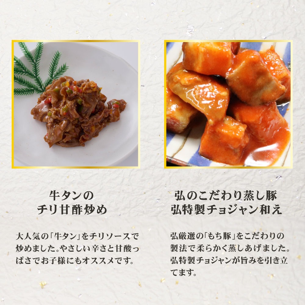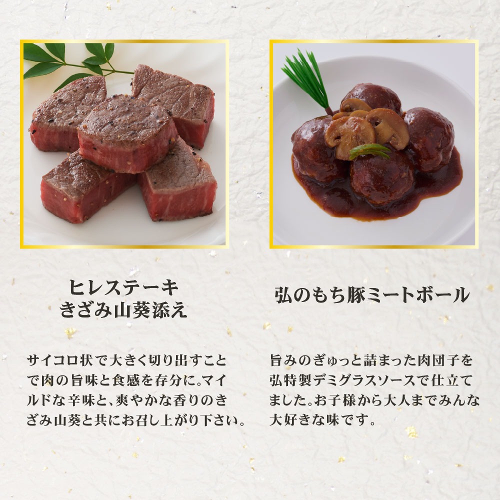 お肉で祝う「迎春メニュー」。昨年大好評いただきました「弘の肉おせち」がバージョンアップして登場!今年も温めてさらに美味しい、二段重です。こだわりいっぱいの弘オリジナルのメニューを詰め合わせました。